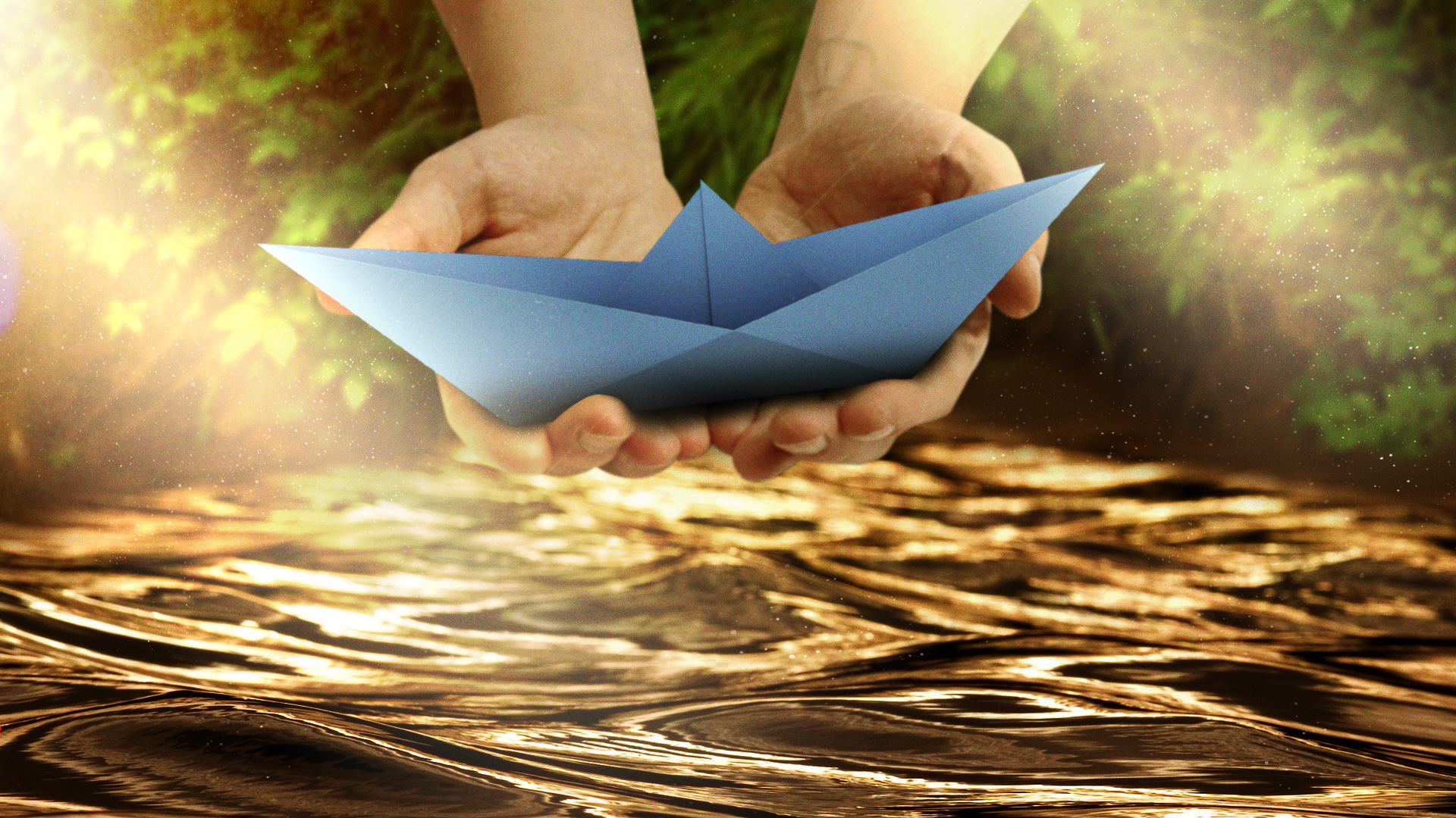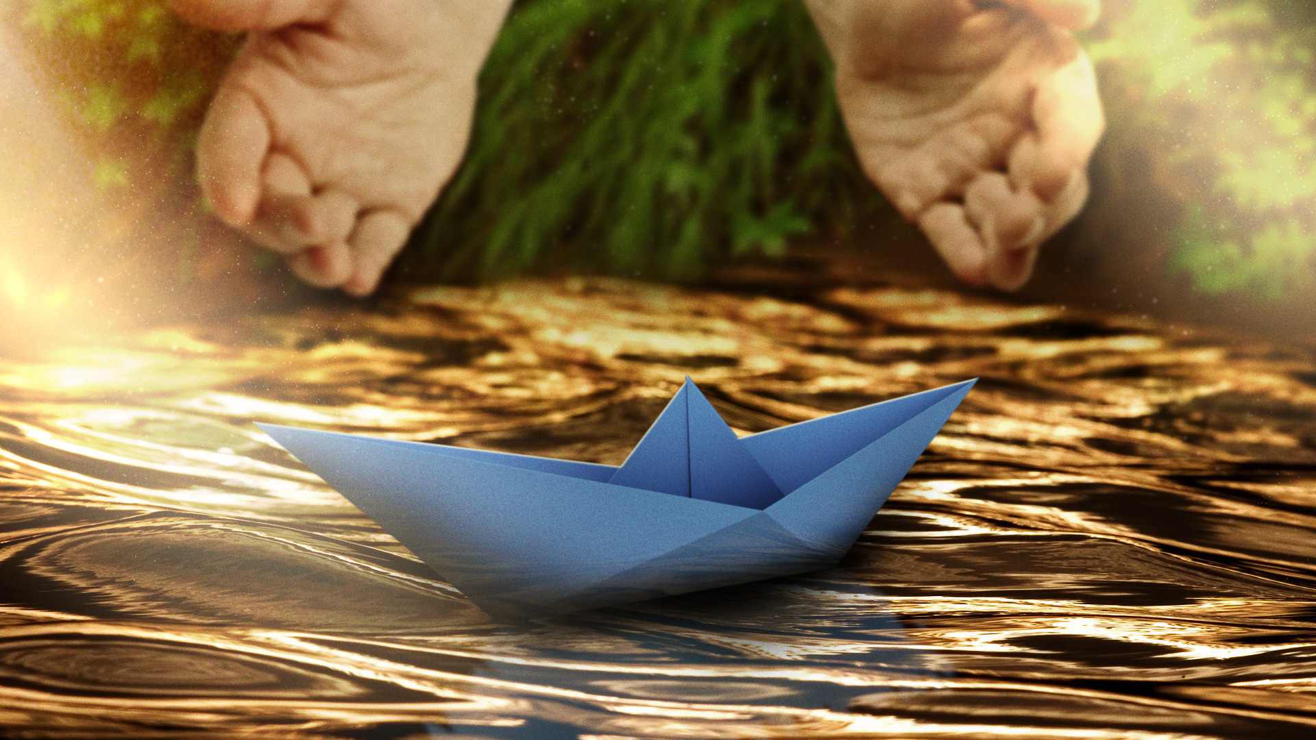 Paper airplane and boat concepts for an animated logo.